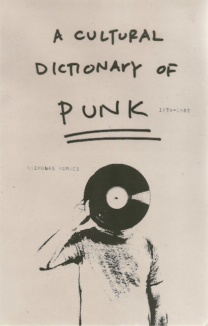 I've arrived late to Nicholas Rombes's A Cultural Dictionary of Punk: 1974-1982, a smart, sweeping, ambitious piecing-together of punk culture and history in the form of alphabetical entries. Continuum published the book three years ago; Rombes, a Professor of English at University of Detroit Mercy, had previously written two books on film and a book for the 33 1/3 Series on the Ramones' debut album (disclosure: Rombes and I share a publisher and editor). Wide-ranging in his vision, he takes a lively approach in A Cultural Dictionary of Punk: since punk is by its nature unstable and resistant to received forms, a strictly chronological history might reflect the subject less vitally than a kind of free-form, associative gathering of seemingly unrelated ideas, in essence a repudiation of traditional history. The result is fun, spiky, surprising, and edifying.