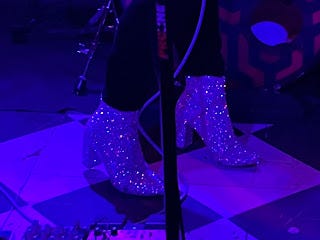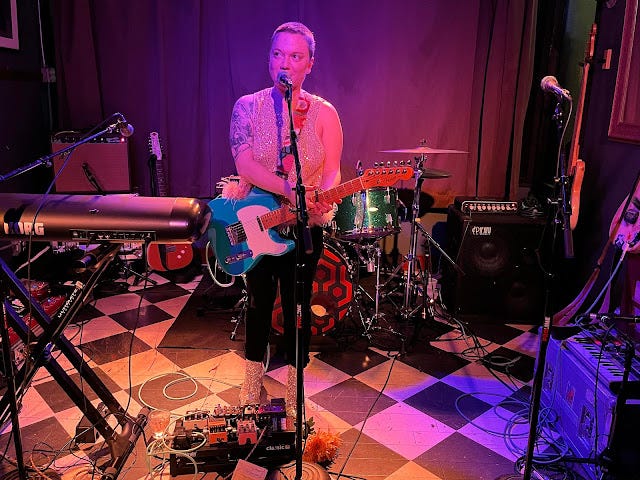 Loveless played several songs from her most recent album, 2020's Daughter ("Love Is Not Enough" killed) as well as a handful from Real (2016) and Somewhere Else (2014). She introduced "Daughter," an emotionally complex and personal song, as being about reproductive rights, and "Sex and Money," a new song, as about "being poor and thinking about sex a lot." (So too was the band, apparently; the evening abounded with innocently smutty jokes. Life on the road.) Later she remarked of another new song: "it's about health care," then stopped, screwed up her face and chuckled, and said, "and it's about breaking up with someone," adding, "All my songs are about breaking up with someone, and then worrying about health care." It was funny—it got a laugh—but it's also genuinely true, as she writes songs that navigate the complicated politics of a woman's body, from desire and surrender to autonomy and self-reliance. "Fuck this country," she was heard to mutter at one point.