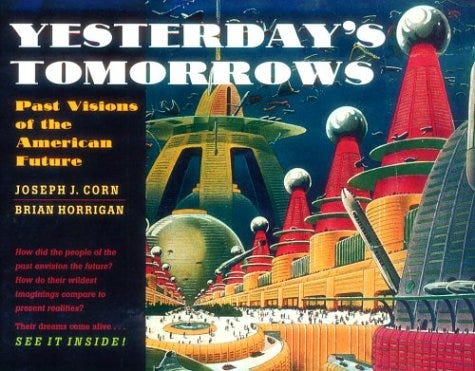Yesterday’s Tomorrows: Past Visions of the American Future is a great book that celebrates the irresistible invention of posterity. Written by Joseph J. Corn and Brian Horrigan, edited by Katherine Chambers, the book began as a museum catalog for an early-1980s Smithsonian Institution traveling exhibit. Curating an absurd if powerful side of the imagination, the book documents great examples of humankind’s tendency to guarantee idealized futures, convinced by a century’s seductiveness that science and technology will indeed rescue us.