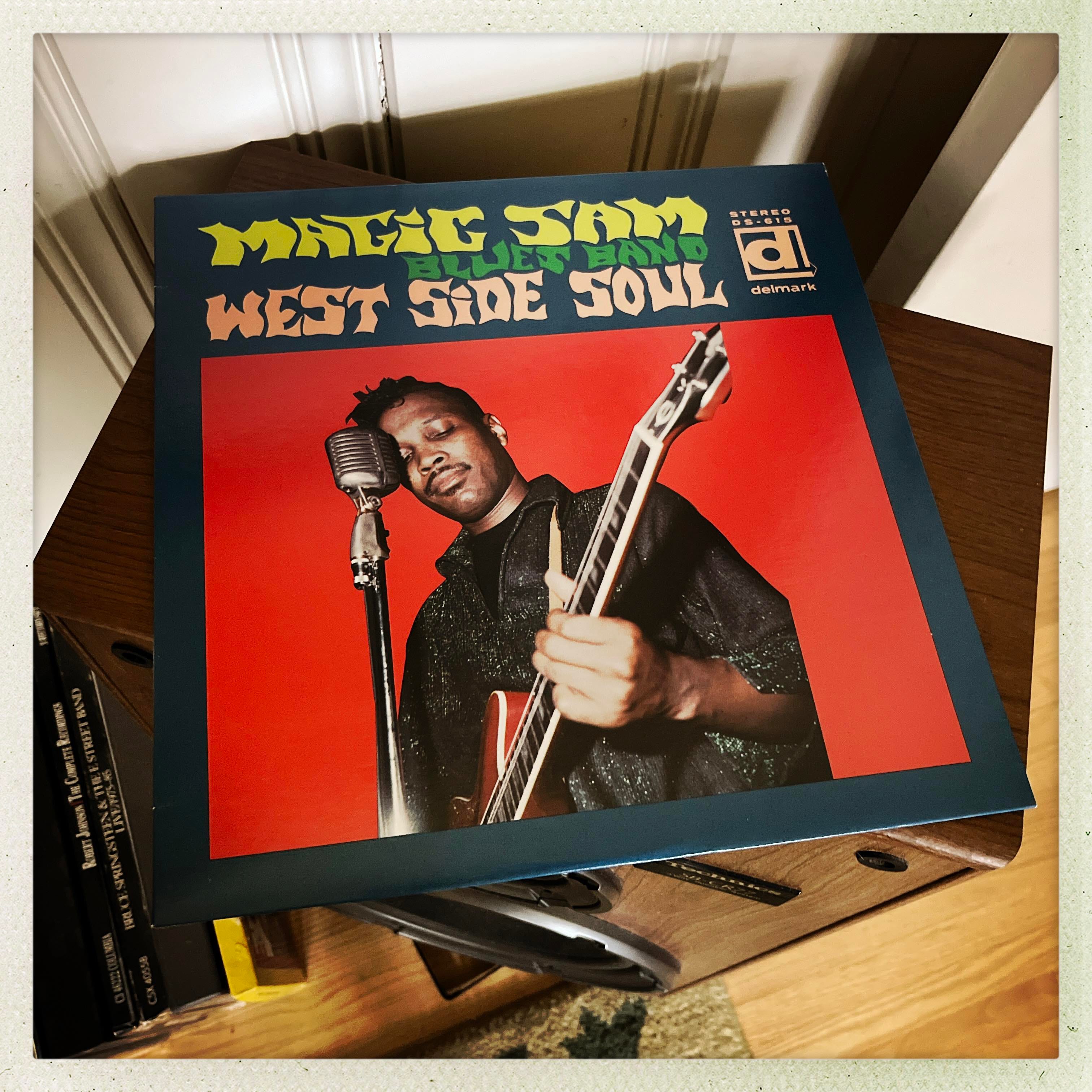 I'm astonished at the places singer and guitarist extraordinaire Magic Sam goes in his version of "My Love Will Never Die," one of the great obsessive love songs in blues history. Willie Dixon wrote the brooding tune and released it in 1952 with his Big Three Trio. After Otis Rush and others, Magic Sam recorded a version at Sound Studio in Chicago with his Blues Band for his debut album West Side Soul, released in 1967. Mighty Joe Young aids and abets on guitar, and Stockholm Slim on piano, Earnest Johnson on bass, and Odie Payne on drums round out the band, who play—surrender to, really—the compulsive 12/8 time as if they have no choice: the song arrived, and well, that's it, you may as well not play it like might you stand out in the rain and stay dry. The music masters the musicians, even as they master its dilemmas.