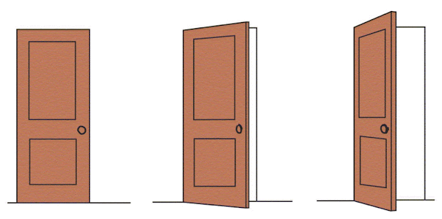 Regardless of how distorted the image of the door becomes—narrower as it's opening or closing—we still perceive the original rectangular shape; the third image above doesn't freak us out, and we don't think the door is melting or somehow shape-shifting. We know it's the door, only that it's shape changes relative to our distance from it and the degrees it swings on its hinges. All of this, of course, happens beneath our rational consciousness, and happens with light and location, as well, and with music and speech. From Wiki: