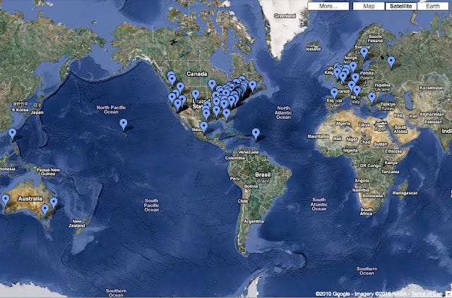Weird and cool: Google Maps, via Google Books, has produced a world map of all of the places mentioned in Sweat: The Story of the Fleshtones, America's Garage Band.