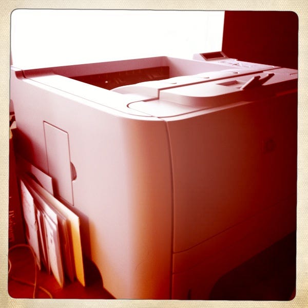 Can think of my current HP Laser Jet P2055dn printer nostalgically in the present? I likely will one day; who knows how we'll be printing documents in the future, maybe the very idea of paper will be ludicrously dated. I'll miss my printer, then, in a kind of sentimentally indulgent nostalgia for a simpler time: god I miss that machine, cords, paper, ink, such innocence lost!.... Courtesy of the Kaimal Mark II and Ina's 1969, I'll let Hipstamatic do the instant nostalgia for me: