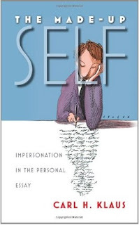 I just finished Carl Klaus's thoughtful The Made-Up Self: Impersonation In The Personal Essay. When a writer claims that he's writing autobiographically, Klaus argues, what he's really doing is creating a persona, a version, or more often versions, of himself. What Klaus doesn't explicitly say is that all personal writing should bear the tag "Based On True Events." Are my essays simply made-for-TV recreations of the past, filtered through changeable aspects of my personality? Of course. Klaus asks a lot of good questions about authenticity and honesty, looking at autobiographical work from Montaigne's many selves to Nancy Mairs's brutally vivid self-portraits.